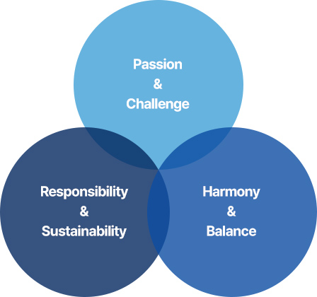 HB Insight의 핵심가치는 Passion & Challenge, Harmony & Balance, Responsibility & Sustainability입니다.