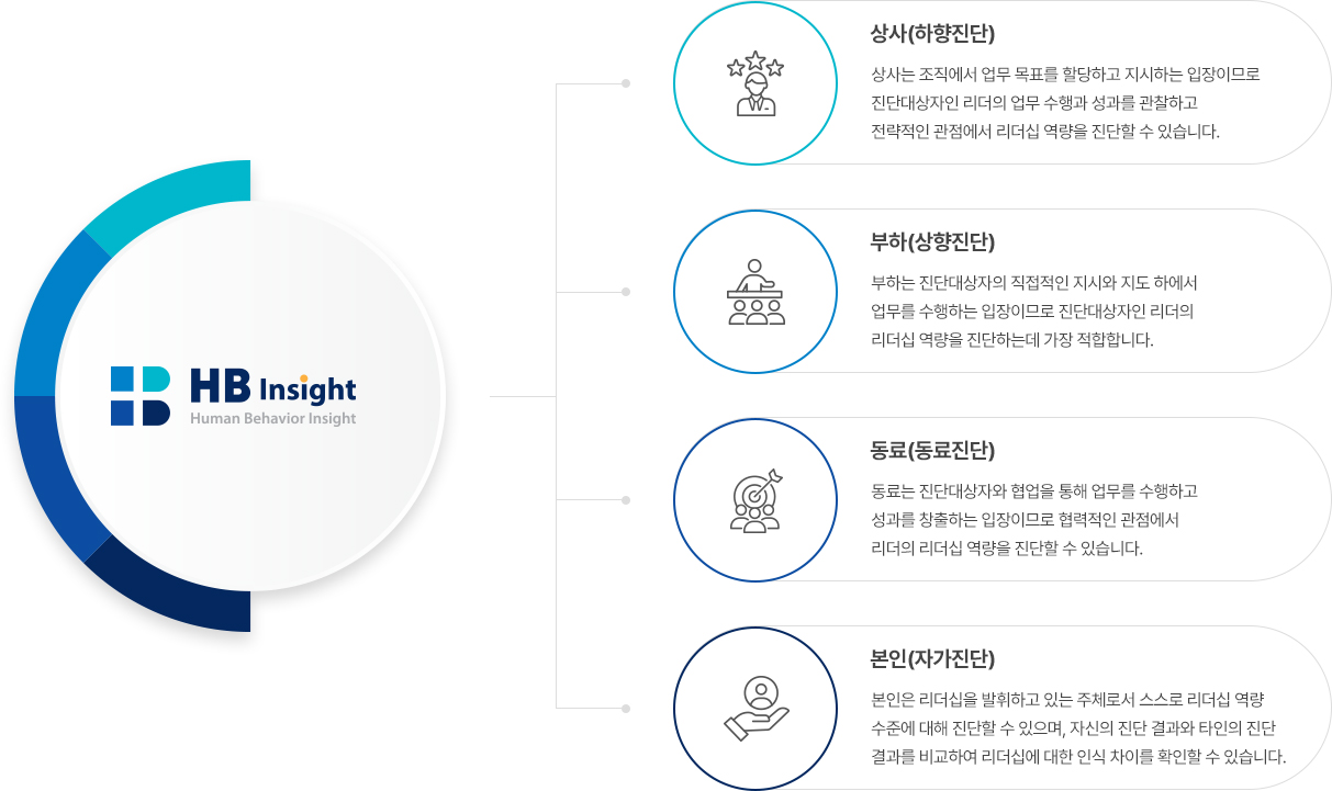 HB 리더십 다면진단은 20여년 동안 수행한 연구 및 컨설팅 결과를 토대로 HB Insight에서 독창적으로 개발한 리더십 다면 진단 프로그램이며,